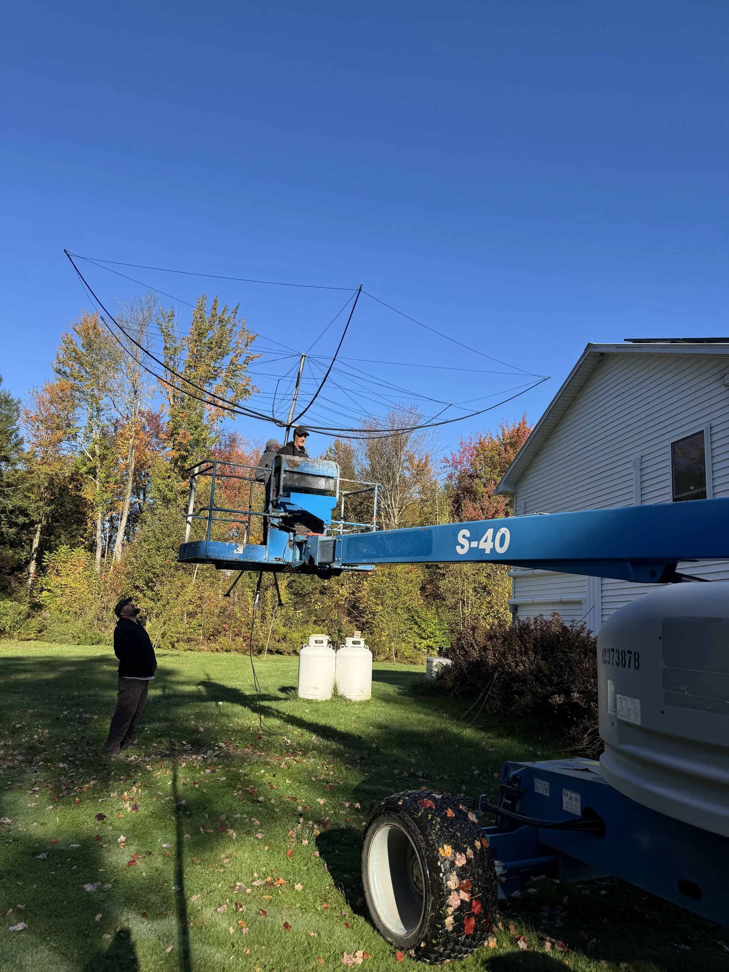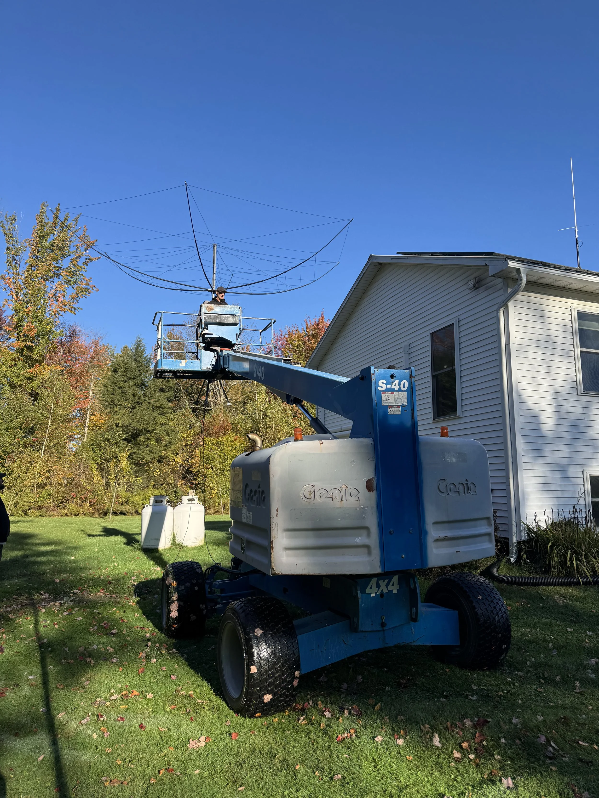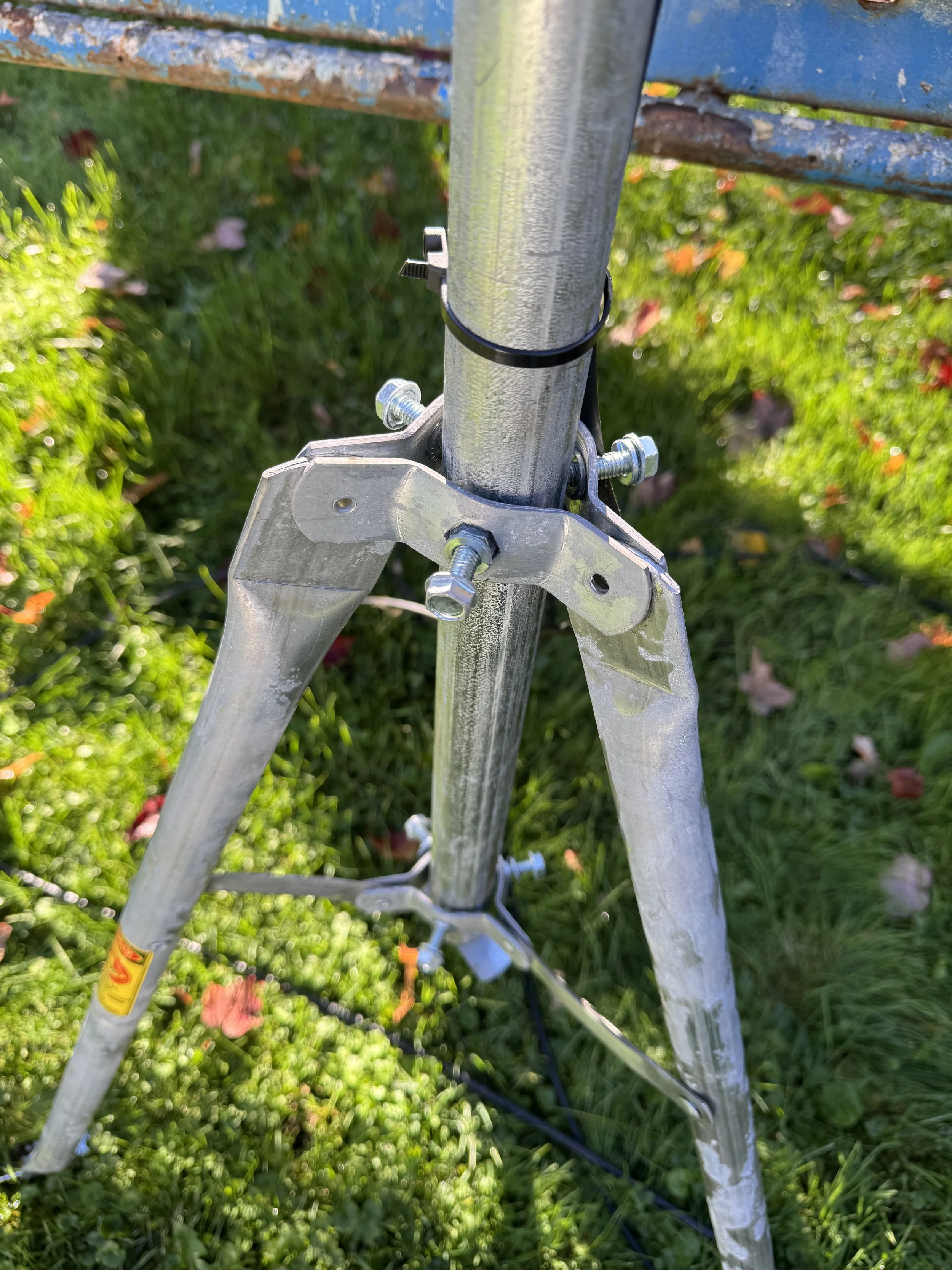 Honestly, I was devastated. Because of my solar panels, there isn't much room to put a tripod. And all the pictures I saw on NA4RR's site showed this tripod holding up the antenna. Figuring out what new thing I would need to get would take time and cost money. Not to mention that it took over a month to get a lift for the job.