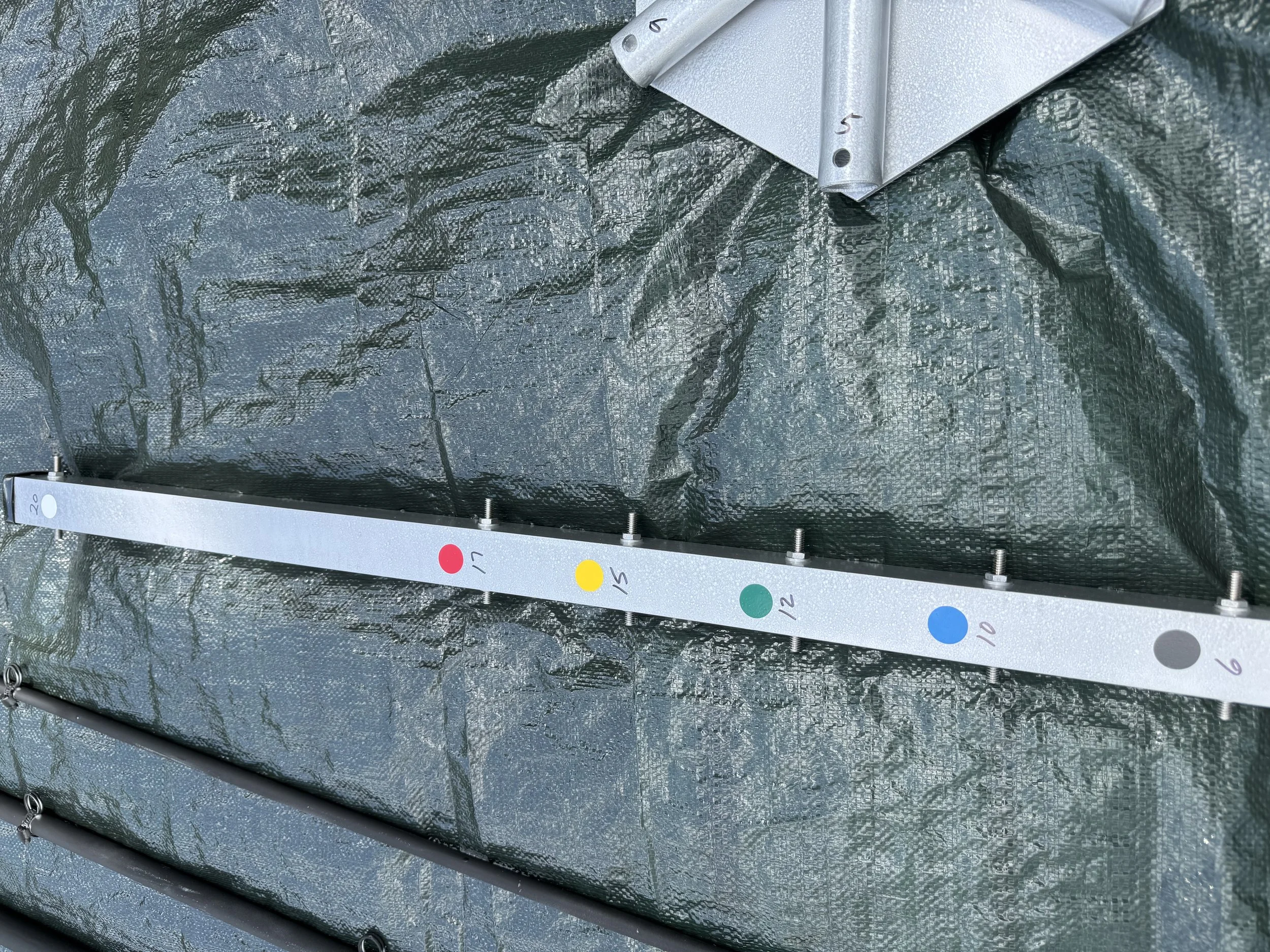 Notice the color coding for each of the bands. Plus notice the spreaders are numbered along with an F for the Front of the base plate (where the antenna is pointed).